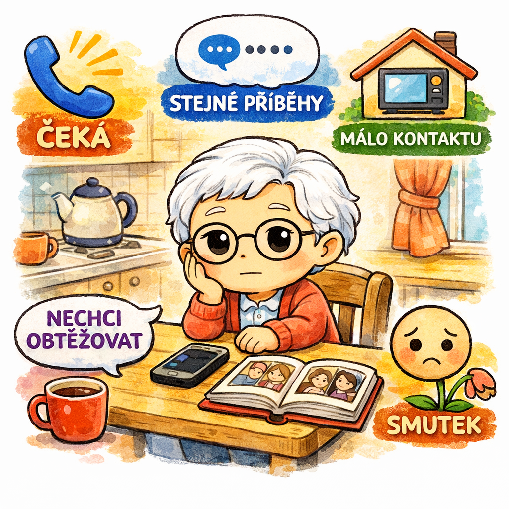 Mnoho starších lidí tráví velkou část dne doma bez společnosti. Děti pracují, vnoučata mají své povinnosti a přátel postupně ubývá.